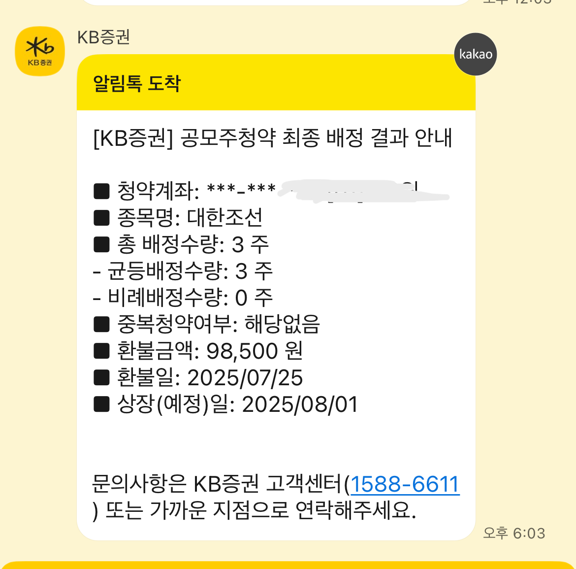 며칠 전에 #대한조선공모주 10주 균등 넣어서 3주 받았고 ㅎㅎ