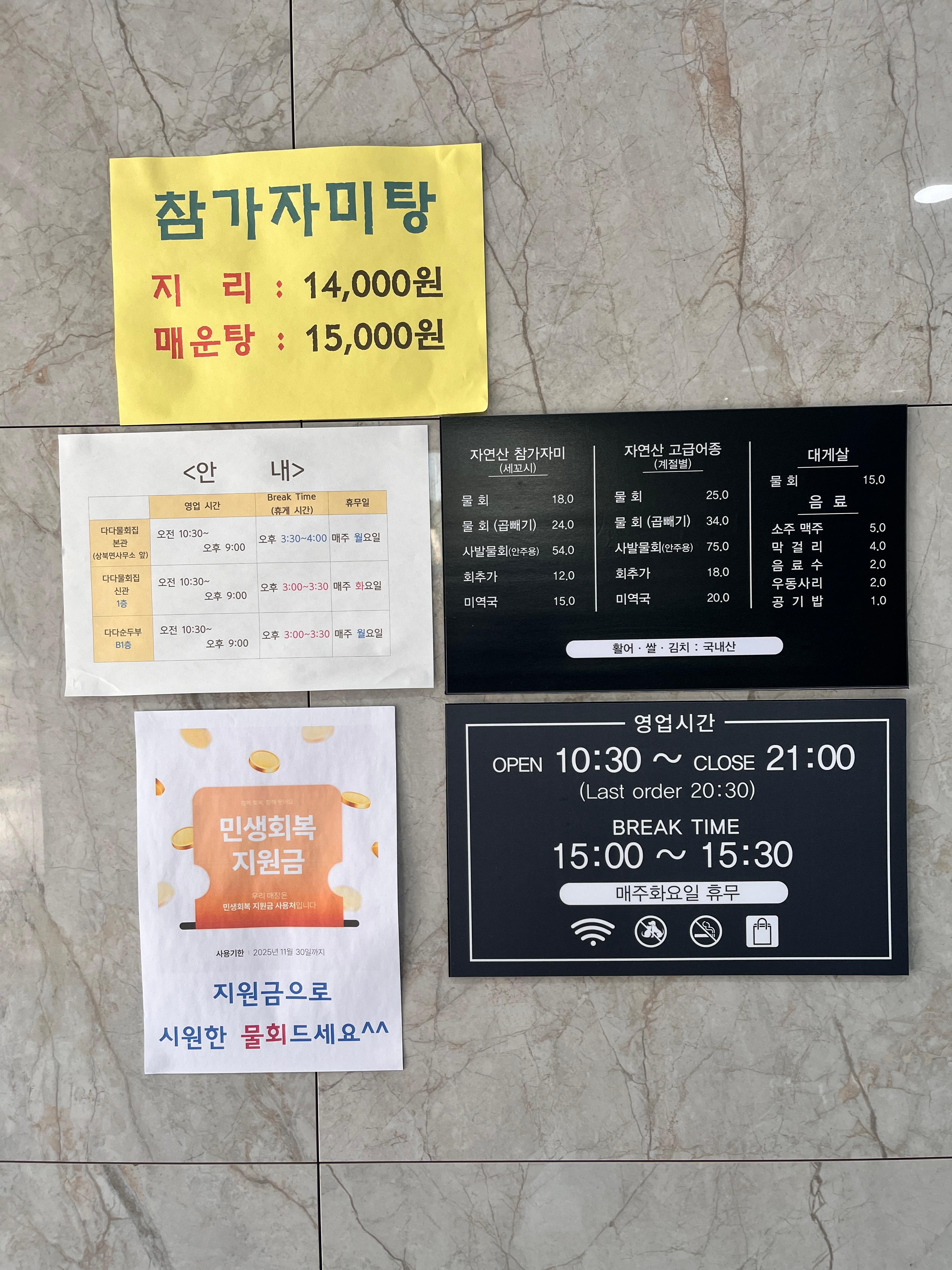 지하1층에 다다순두부 라고 손두부 집도 있는데 아쉽게 이 날은 쉬는 날이라 못 갔다.