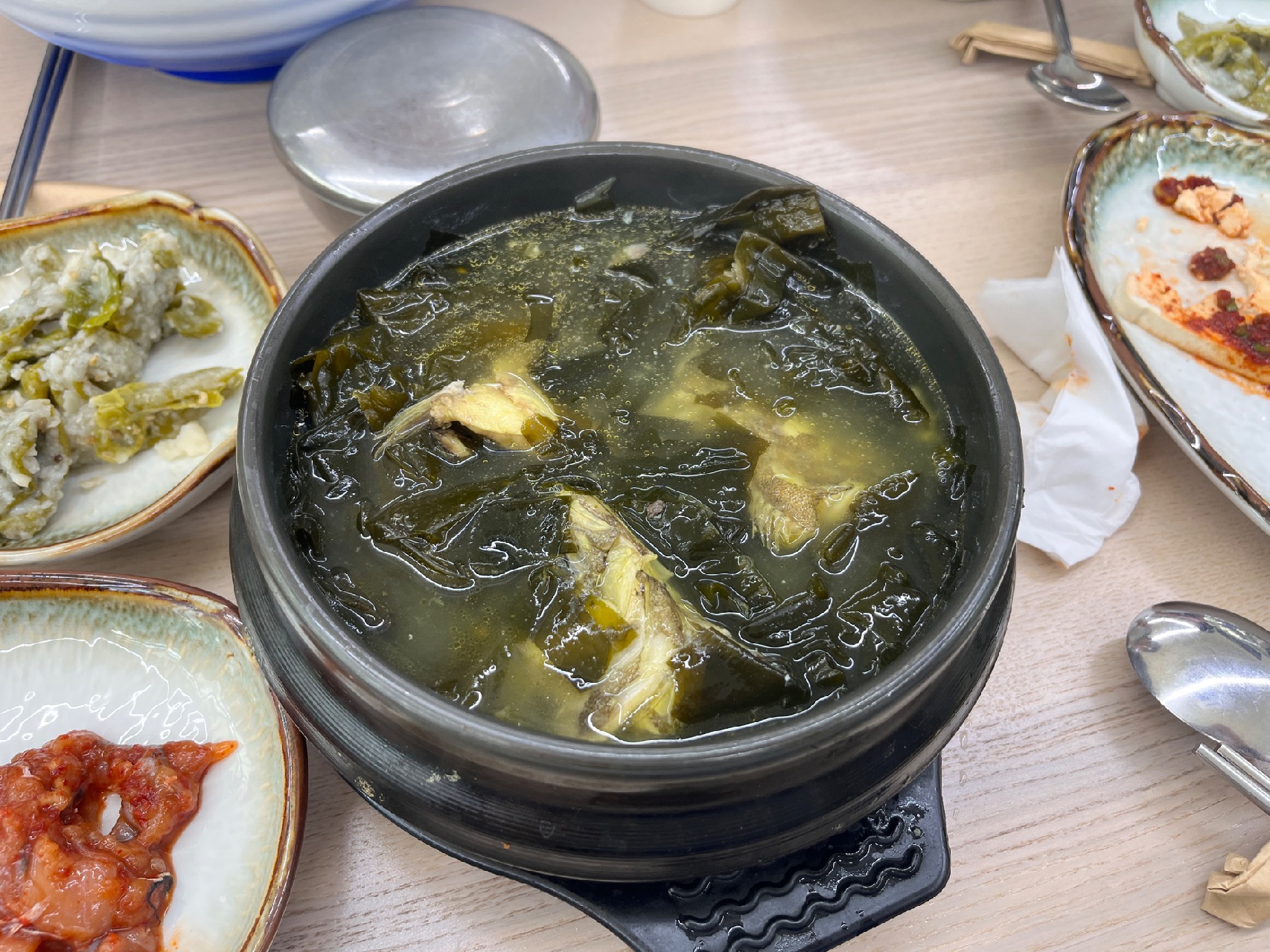 사이드로 나오는 #가자미미역국 도 미역이 부드럽고 맛있었음!