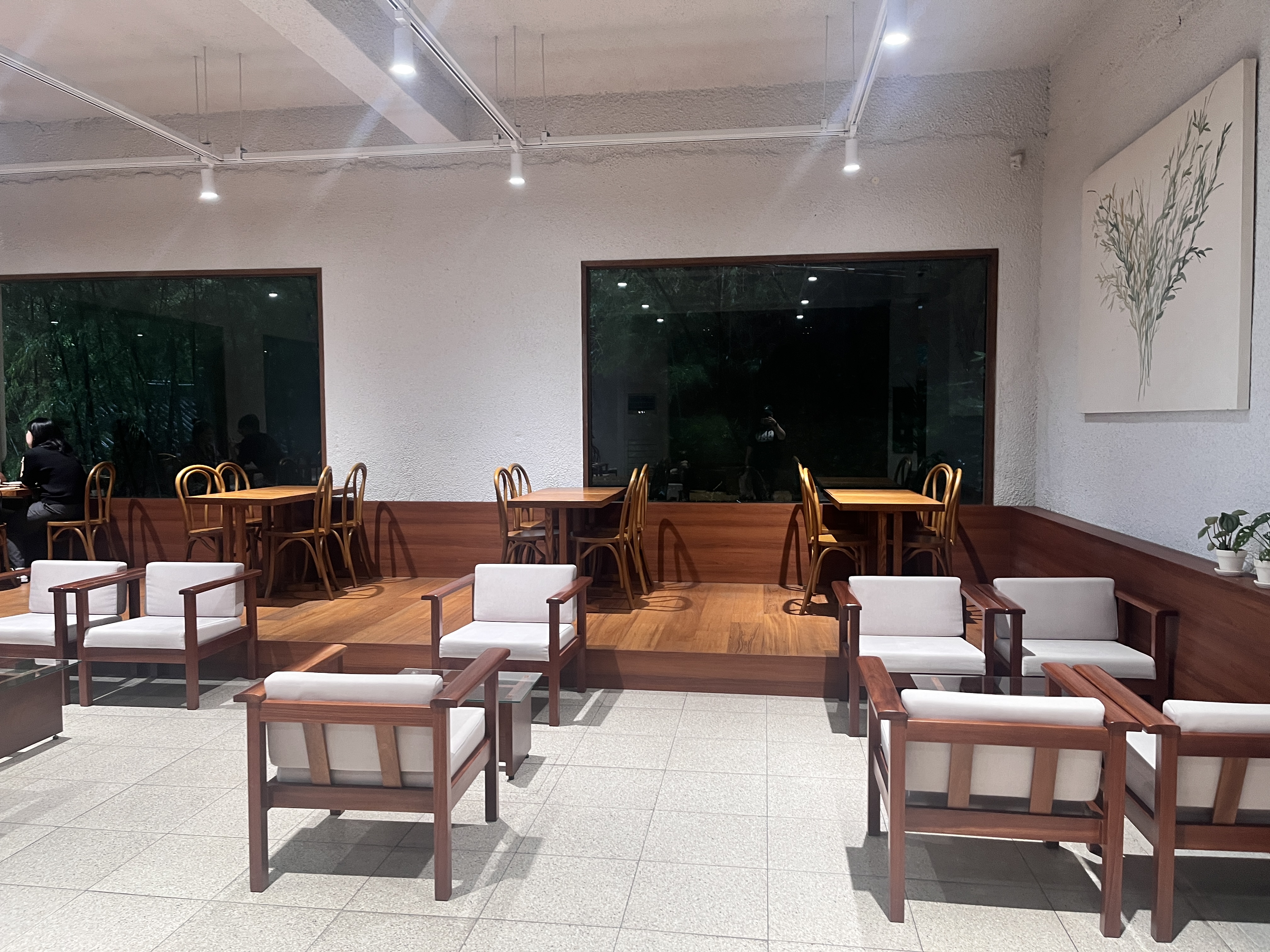 내부는 푸릇푸릇한 창문을 배경으로 자리가 마련 된 곳이 많은 편인데