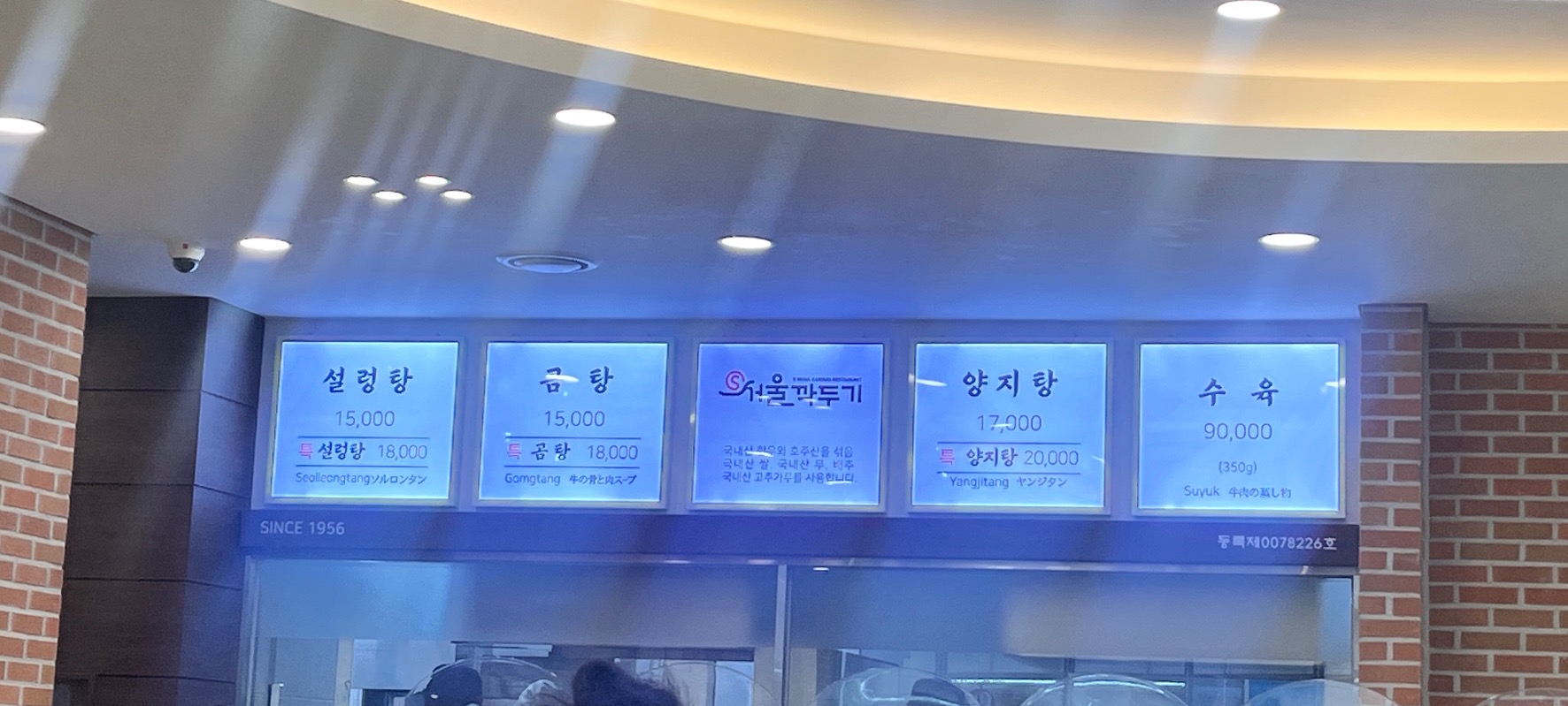 설렁탕, 곰탕, 양지탕, 수육 이렇게 구성되었고